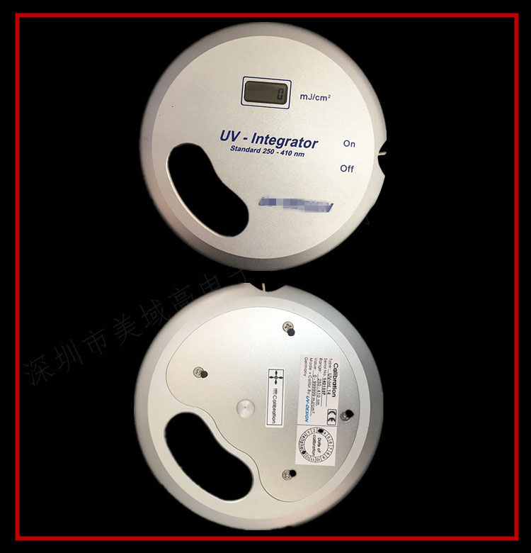 3. 當(dāng)儀器在光源照射一定時(shí)間之后,已記錄所感測(cè)到的UV紫外光能量,此時(shí),可以從儀器正面的顯示屏上讀取能量值,能量值的對(duì)應(yīng)單位是:mj/cm2(毫焦耳/平方厘米)。